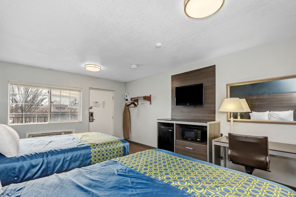 Our premium smoke-free room combines comfort and convenience with a microwave, refrigerator, flat-screen TV, and free Wi-Fi. Families enjoy kids stay free, and pets are welcome. After exploring Highbanks Metro Park or shopping at Polaris Fashion Place, unwind with ease. Free parking and nearby dining make for a practical, affordable, and welcoming Columbus stay.
