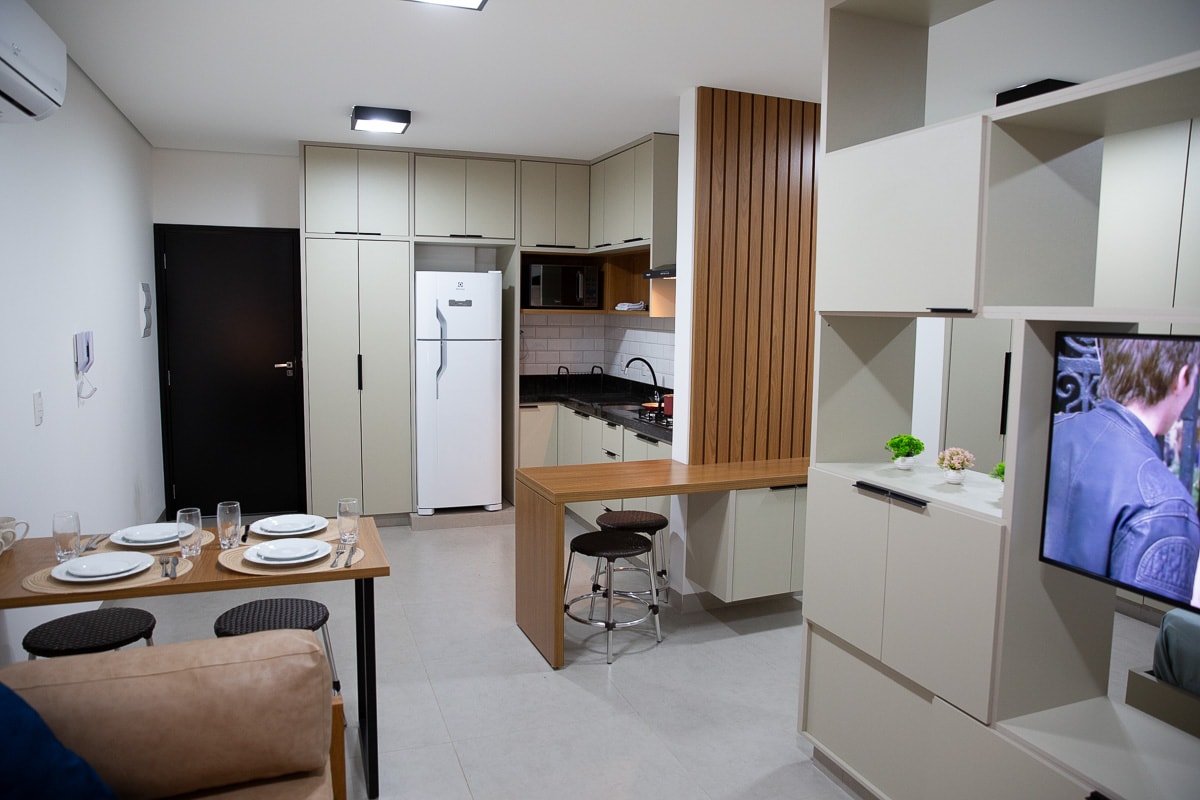 Täielik ja hubane korter, ideaalne sinu peatumiseks. Seal on 1 mugav magamistuba WiFi-ga, 1 kaheinimesevoodi, integreeritud elutuba köögiga, privaatne vannituba ja hästi organiseeritud keskkond. Majutuskohas on ka bassein vaba aja veetmiseks, gurmee-ruum ja kaetud garaaž, mis tagab suurema mugavuse ja ohutuse. Ideaalne puhkamiseks, vaba aja veetmiseks või töötamiseks, pakkudes mugavust ja praktilisust ühes kohas.