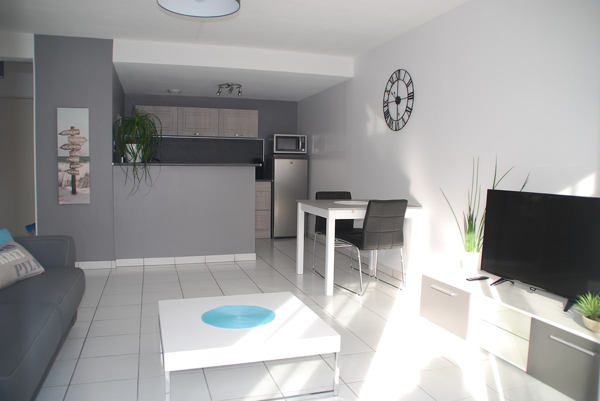 1 magamistoaga korter, vähem kui minuti jalutuskäigu kaugusel kesklinnast ja rannast, turvaline parkimiskoht. Täiuslikult varustatud, nõudepesumasin, pesumasin, ahi, mikrolaineahi. Voodid tehakse saabumisel ja saunätikud on olemas. Vannitoas on vann ja tualetid on eraldi.
