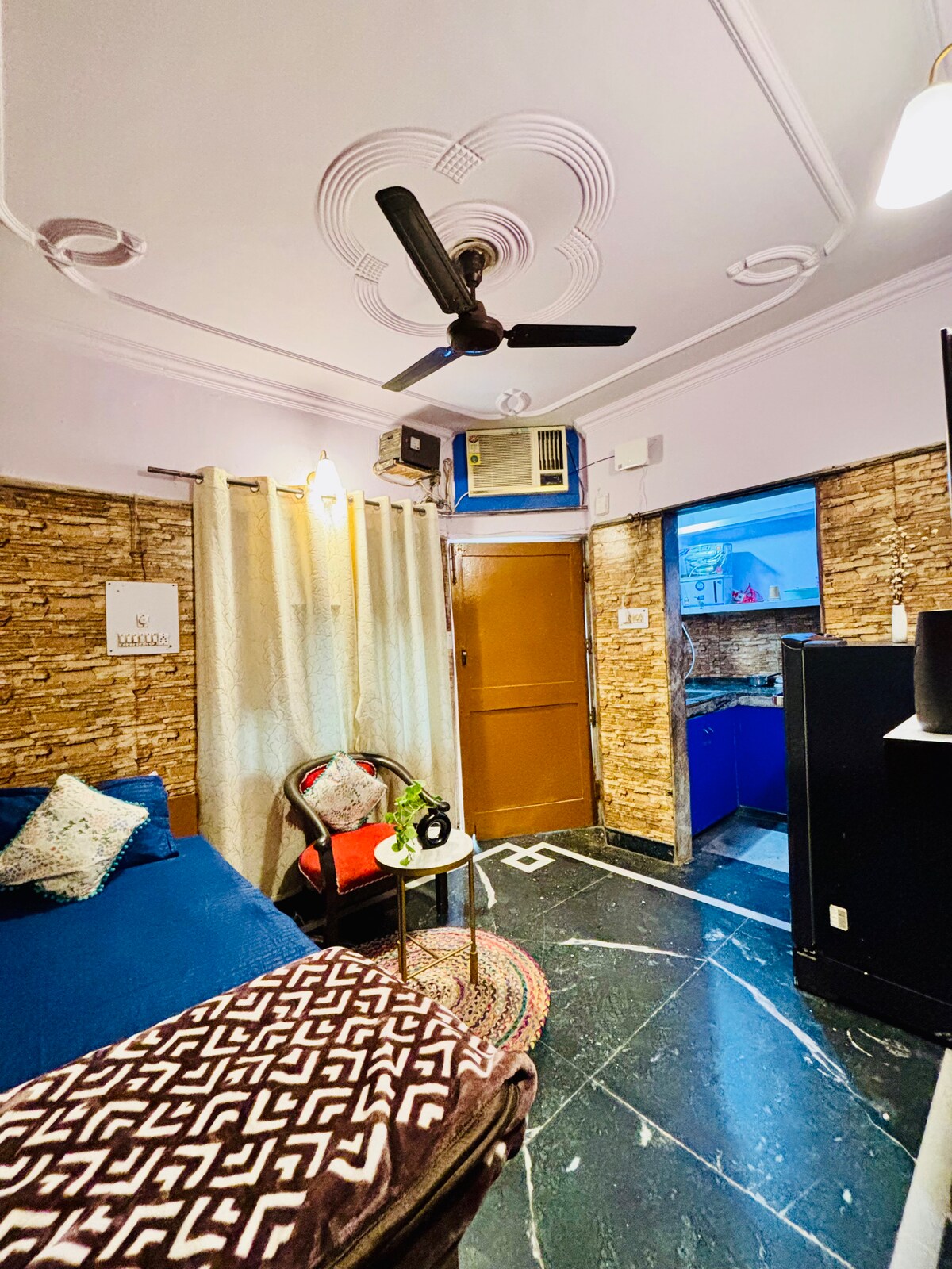- 1 magamistoaga korter, millel on täielikult varustatud kööginurk ja vannituba, asub elamu esimesel korrusel. - Kõik sujuvaks kogemuseks vajalikud mugavused. - Värsked rätikud ja tualett-tarbed. - Wifi 55-tollise teleriga (sh Netflix, Amazon Prime ja Hotstar jne). - paaridele sobiv. - 6 km kaugusel IGI lennujaamast New Delhis. - 1,3 km kaugusel India Lennuakadeemiast. - 1,4 km India lülisamba vigastuskeskus. - 3 km DLF Emporio Mall, Vasant Kunj. - 4 km kaugusel Fortise haiglast