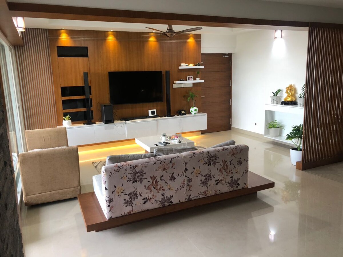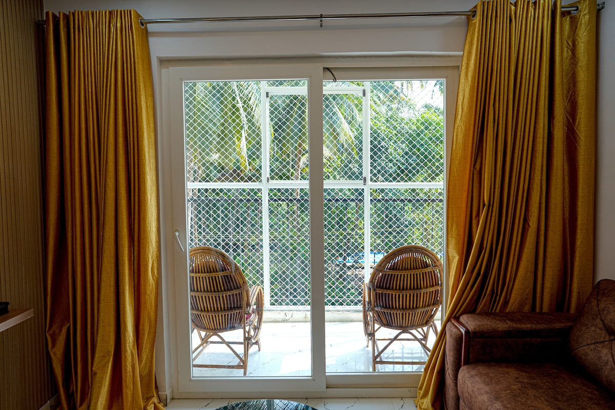 See ilus majutuskoht asub Thrissuri raudteejaama ja bussipeatuse lähedal. ☀ 1. magamistubades on 2 kaheinimesevoodit 1,5-tollise kliimaseadmega ja 55-tollise Smart 4 K teleriga. ☀ 2. magamistoas on 2 kaheinimesevoodit 1-tollise kliimaseadmega ja 35-tollise Smart 4 K teleriga. ☀ Kiire internet Invertoriga ☀ Külmkapi ☀ gaasipliit ☀ Pesumasin ☀ Mikrolaineahi ☀ Pliit, Mixter Grinder ja põhilised köögiriistad. Koolid, kaubanduskeskused, raudteejaamad, bussipeatused, haiglad, kinod ja templid on 5 km kaugusel.