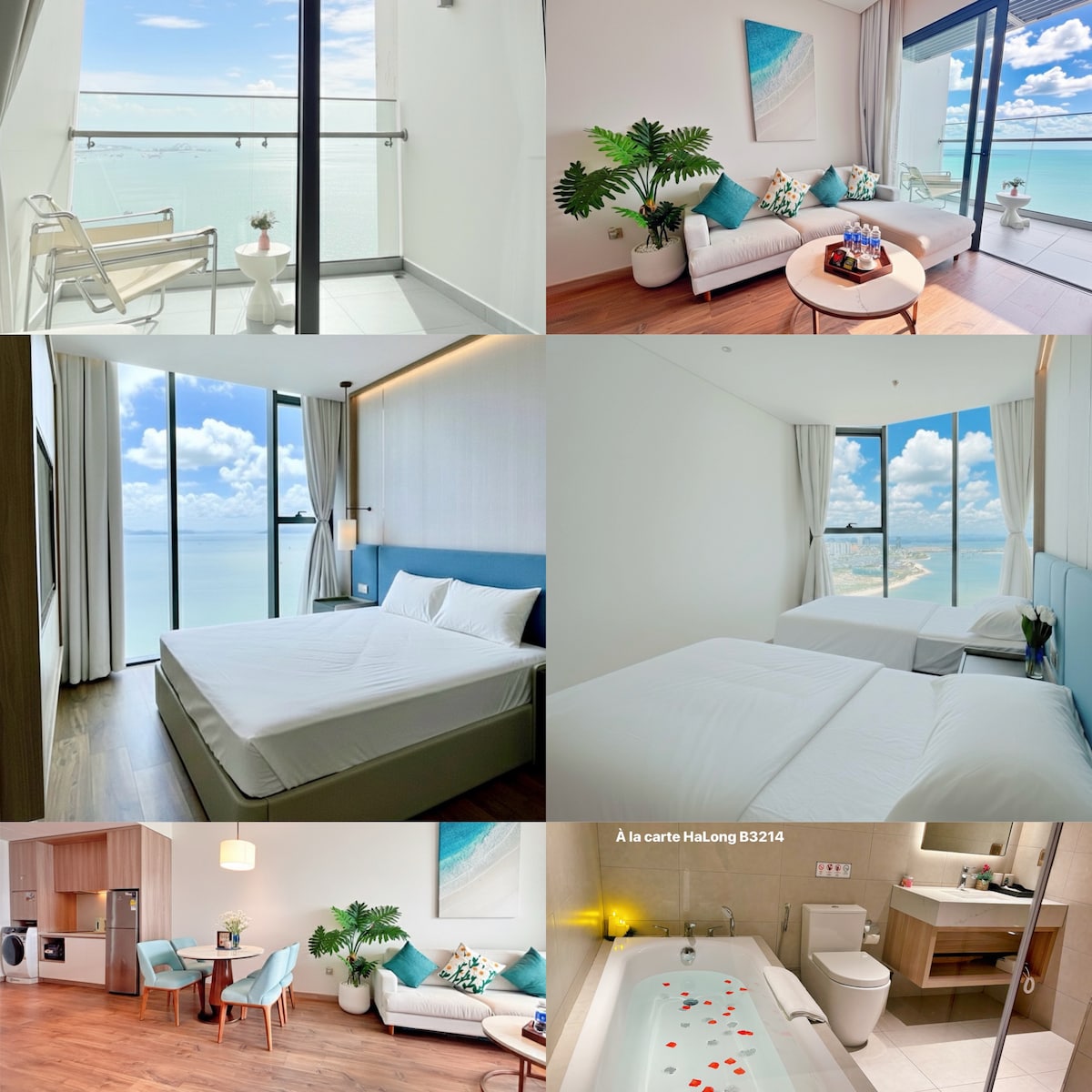 Kõik see À La Carte Ha Long Residence pakub külastajatele meeldivat puhkust. - Korter asub otse ranna kõrval, 40. korrusel on infinity-bassein, teisel korrusel nelja hooaja bassein ja jõusaal (tasuline). - Selles imelises lisateenustega korteris peatudes saan pakkuda tasuta teed, kohvi, vett. - Tasuta wifi, kliimaseade - Kümblusvann. - Pesumasin, kuivati korteris. - Elektriline veekeetja aitab sul keeta vett tee ja kohvi valmistamiseks