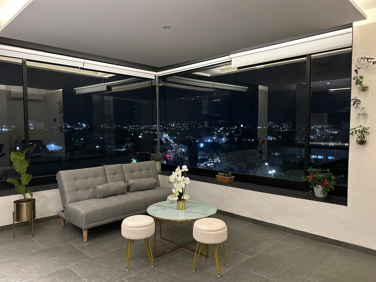 SKY San Marcos Luksuslik korter Aguascalientese kesklinnas, kust avanevad uskumatud vaated kogu linnale. Naudi parimat asukohta, et tutvuda Aguascalientese südamega. Saad jalutada kuulsale Carranza tänavale koos kohvikute ja restoranidega ning Agsi katedraali ja selle kauni väljaku juurde vaid 10 minutiga.
