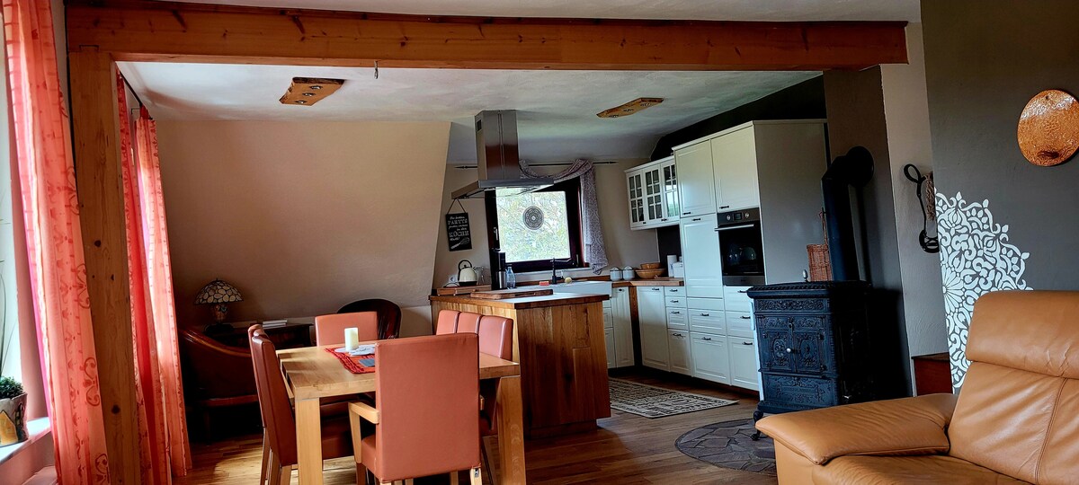 Tere tulemast Little Red Riding Hood Land 'sse! Saksamaa südames, rohelises Hesse 'is! Meie valgusküllases ja sõbralikus sisustatud korteris saad lõõgastuda üle 100 ruutmeetri. Kaunis, metsikult romantiline looduslik aed pakub muu hulgas mõnda istumisala ja päevitamisalasid, kus saab tutvuda ja nautida loodust uuel viisil. Tule ja vaata ise ja armu.