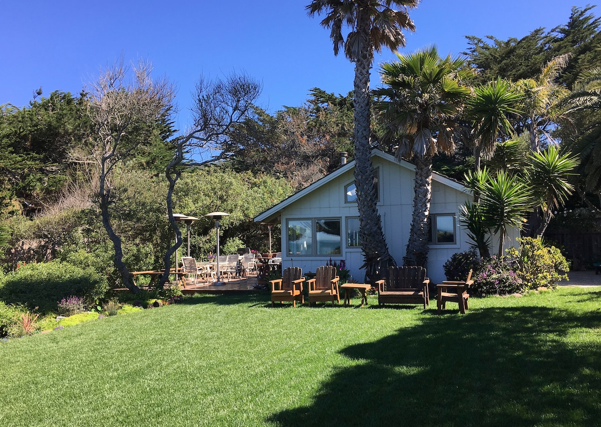 This private and magical property has direct beach access! The grounds are gorgeous with lush gardens and an expansive lawn. It's walking distance to restaurants, music venues & galleries. Enjoy ocean views while you relax in the hot tub or snuggle by the fire pit! Surfer's Beach + Princeton Harbor are just to the north. The Coastal Trail passes by and is perfect for biking or walking. Enjoy surfing, golfing, horse back riding, swimming or just relaxing with a cocktail while watching the sunset!