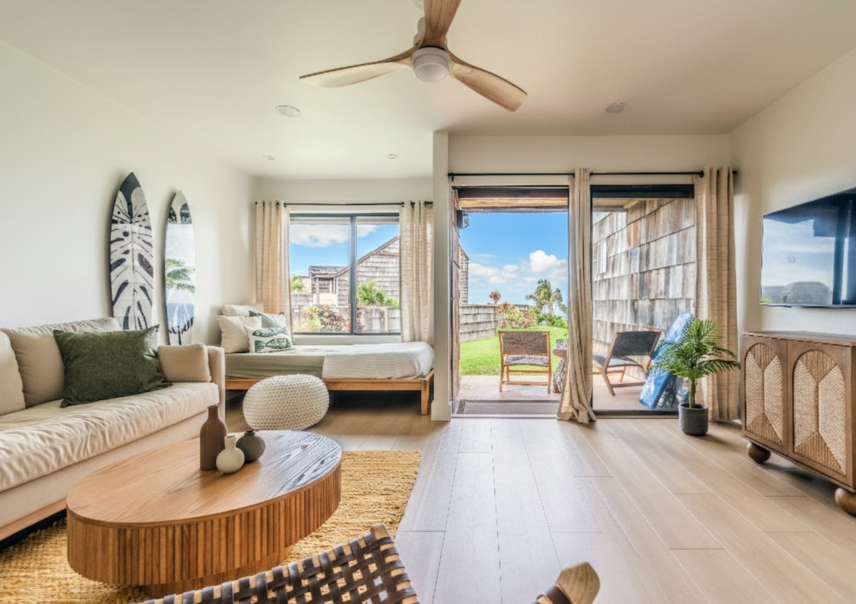 🌺 Tere tulemast Zen Alohasse, sinu rahulikku North Shore'i puhkepaika, mis on täis mugavusi! ☀️ Valgusküllane majutuskoht ühendab kaasaegse mugavuse Kauai looduse iluga. 🌿 Läbimõeldud rõõmsa kunsti ja tipptasemel mööbliga. ✅ UUS stiilne ümberkujundamine + kohandatud käsitsi valmistatud surfikunst ✅ UUS KLIIMASEADE ✅ 8 min Hanaleisse ✅ King-voodi + Luxe voodipesu ✅ Täielikult varustatud kööginurk ✅ Kiire wifi + töölaud ✅ Rand + snorgeldamisvarustus ✅ Nutiteler ✅ Juurdepääs basseinile, mullivannile ja grillile ✅ Tasuta parkimine