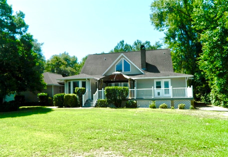 Relax with the whole family at this peaceful place to stay. Enjoy the waterfront property. Free Wi-Fi We have fishing poles, Kayak, Life jackets, crab Traps, Kids beach toys, Bicycles, corn hole boards, games for the family to play. You also have catfish food to feed the fish, BBQ grill, TV at bar area downstairs to enjoy. Public boat launch 2 miles down the road there is a deck to dock your boat on the property. 5 miles from the beach.