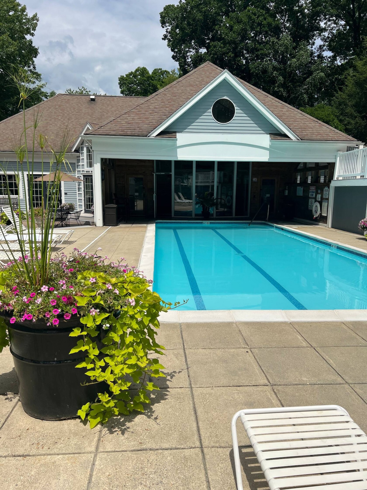 Lõõgastu ja põgene Prantsuse maakonna villa 1. flr stuudiosse, mis asub Mohegan Suni, Foxwoodsi, Mysticu, CT ja Norwich Spa kõrval. Selles võluvas villas on elegantne sisekujundus, eriti lai kaheinimesevoodi , väljatõmmatav diivan, täisvarustusega köök ja vann soojendusega rätikusoojendiga, hubane kamin, sülearvutisõbralik töökoht ja privaatne rõdu vaatega aiale ja golfiväljakule Mugavused: 2 hooajalist soolaveebasseini, mullivann, saunad, parkimine ja pesumaja. Ideaalne puhkus lühiajaliseks, ettevõtte üürimiseks, nädalavahetuseks, igakuiseks või pikaajaliseks peatumiseks.