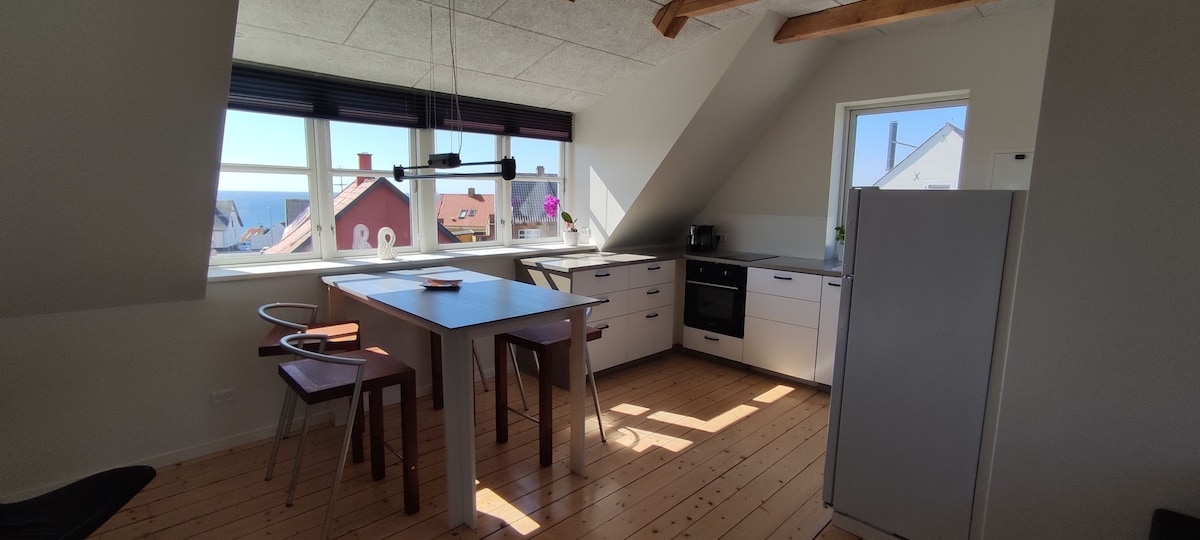 Naudi oma puhkust selles äsja renoveeritud puhkemajas, mis asub kesksel kohal hubases Hasle 'is jalutuskäigu kaugusel sadama vanni rannas ja metsast. korteril on oma terrass ja merevaade kogu korterist.