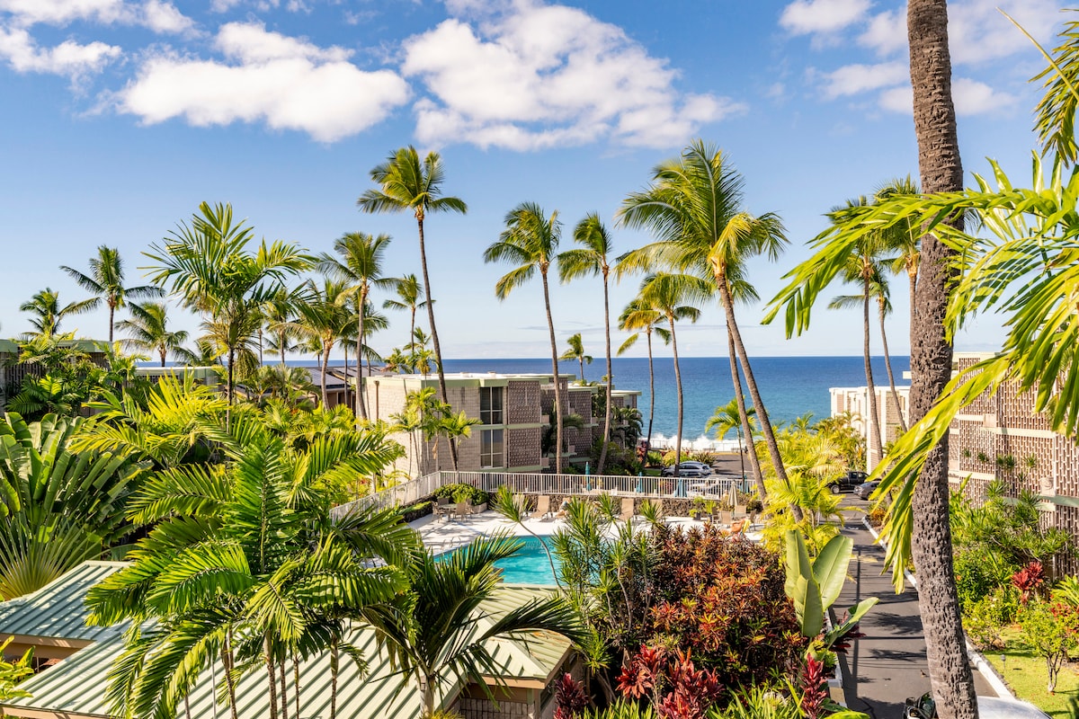 Parim korter Kailua-Kona populaarses Sea Village 'is ja üks ainsatest A/C-ga! Põnevad ookeanivaated, tuuled, troopilised vaatamisväärsused ja helid tervitavad sind selles hõlpsasti ligipääsetavas esimesel korrusel asuvas üksuses. Alusta oma päeva privaatsel lanail, vaadates keerutavaid delfiine, ja lõpeta see klaasi veiniga, mis vaatab päikeseloojangut üle ookeani. See täielikult uuendatud võtmed kätte saanud korteril on avatud kontseptsiooniga elamine ja kesklinna 5 minuti kaugusel. Ideaalne baas üksikisikule, paarile või väikestele peredele Big Islandi avastamiseks!