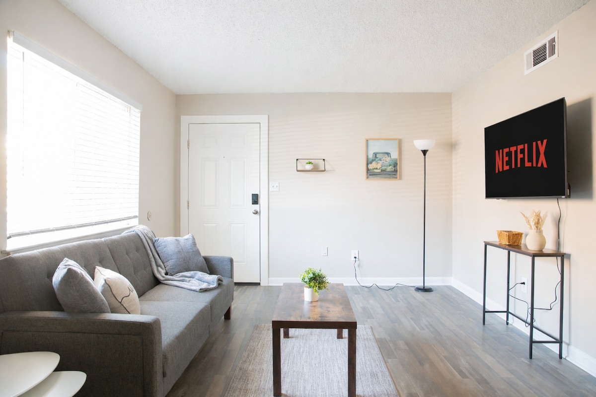 Step into the comfort of this beautiful light-filled, 1 bedroom with outstanding amenities in the quiet and peaceful Homewood area. The apartment promises to bring an urban retreat close to Birmingham's best eats, sites, and entertainment. Additionally you are only minutes from the UAB campus and UAB St. Vincent's Hospital in Birmingham. This is prime Birmingham living at its best! ✦Fast Wi-fi ✦Fully equipped kitchen ✦50" Smart TV ✦Free parking ✦Pool ✦Contactless self check-in