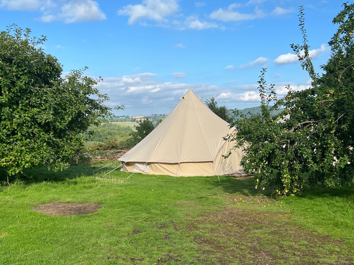 Meie mullivanniga kellatelk on ideaalne rahulik põgenemine maalt. Sinu voodist avanevad vapustavad vaated mustadele mägedele. See on ideaalne koht lõõgastumiseks. Meie telgid on 2 aakri suurusel põllul hästi paigutatud, nii et rahu on garanteeritud. Koerad on teretulnud! Töötavas peretalus asuvad jalgteed, mis ühendavad sind paljude suurepäraste jalutuskäikudega, ja mustad mäed on vaid lühikese autosõidu kaugusel. Samuti oleme vaid 20 minuti autosõidu kaugusel Hay-on-Wye 'st ja 35 minuti kaugusel Herefordi linnast.