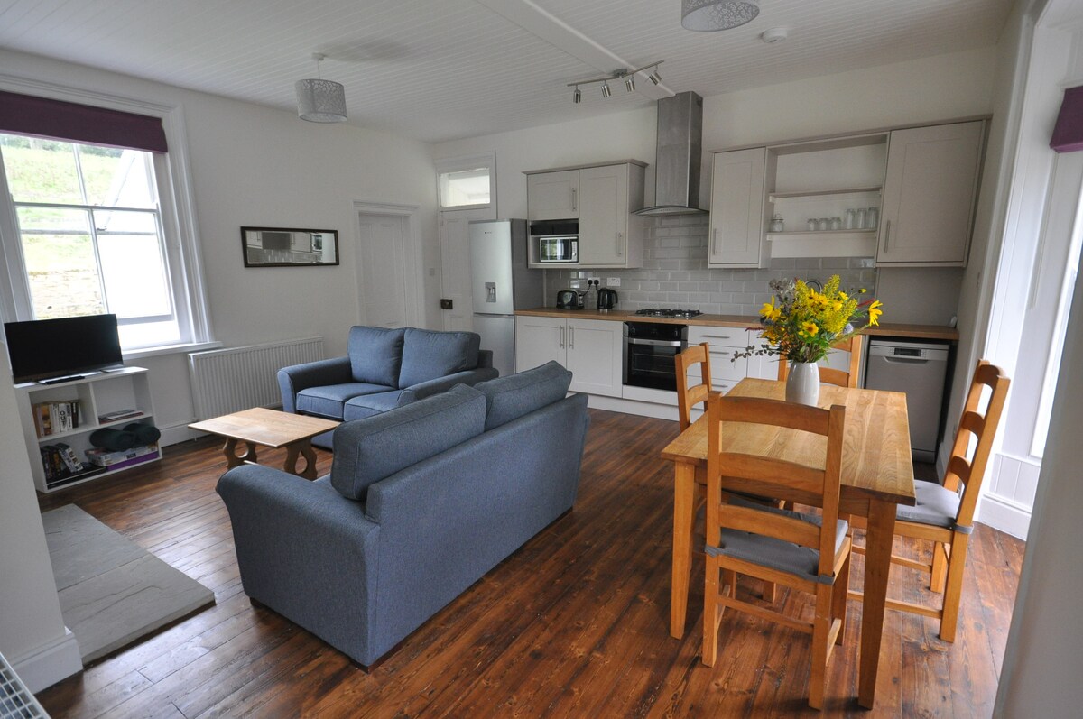 School Cottage asub eraldatud asukohas, Hexhami turu kesklinnast jalutuskäigu kaugusel, on ainulaadne hoone; suurepärane baas, kust avastada kõike, mida Northumberland pakub. Maamajas on kaks eraldi magamistuba ja 4 inimest. Seal on täielikult varustatud köök nõudepesumasina ja pesumasinaga. Puhketoas on elektriline puidupõletusahi koos satelliittelevisiooniga. Kahe auto parkimine tänavaväliselt on olemas koos privaatse lõunapoolse sisehooviga.