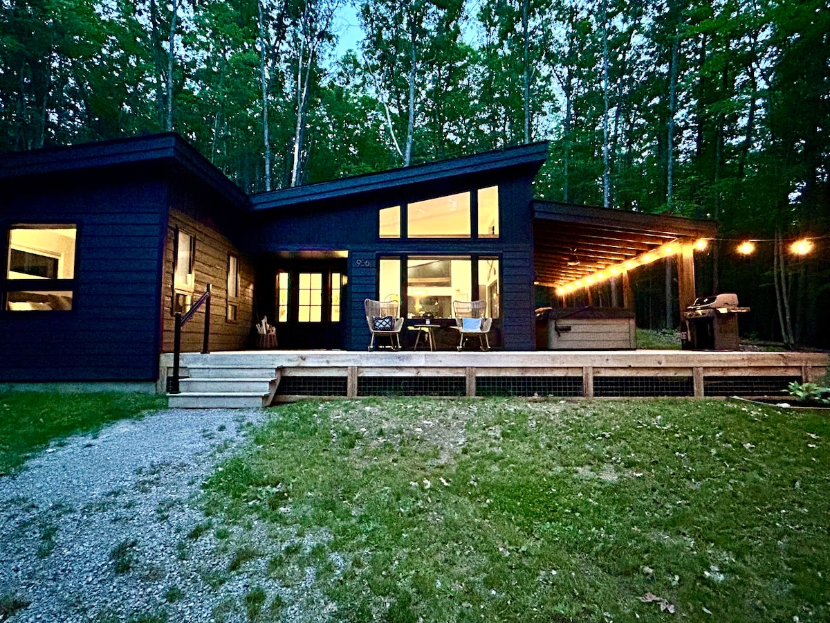 The Modern Moose will captivate you with its unique design and modern architecture. 2 acres of stunning mature trees surround the property. After a long day on Higgins Lake, relax on the wraparound deck, which features a 6-person hot tub, gas grill, picnic table, wicker egg chair, and outdoor shower. Enjoy the view of the nature preserve which is home to a plethora of wildlife. Or spend the evening watching a movie on the Roku TV, playing board games, or listening to music on the turntable.