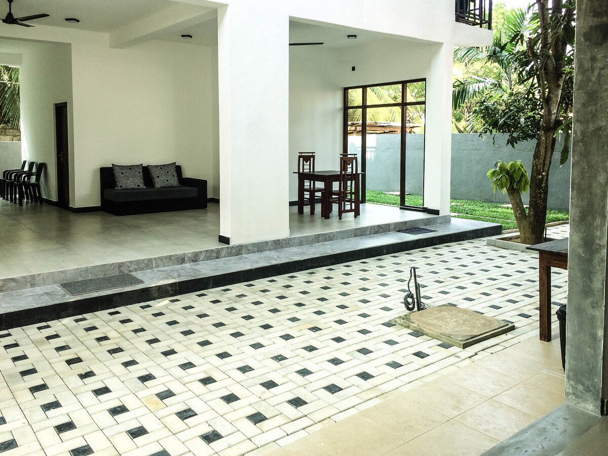 Perekorter Mirissas esimesel korrusel vaikses aias, 7-minutilise jalutuskäigu kaugusel ilusast Mirissa rannast, 5-minutilise jalutuskäigu kaugusel sadamast. 3 magamistuba, 2 vannituba, elutuba, varustatud köök ja rõdu vaatega aiale. Ideaalne pikaajaliseks peatumiseks. Sul on privaatsus ja saad ka ainulaadse kohaliku elukogemuse.