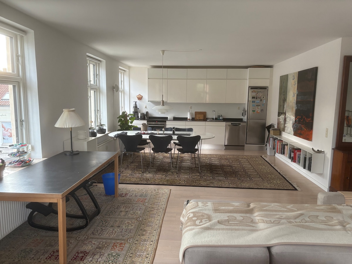 Enjoy a stylish experience in this centrally located apartment in Hillerød. The apartment is characterized by quality, coziness and the joy of cooking. It is a non-smoking apartment. The apartment shares a cozy courtyard with table and chairs, and has its own barbecue in a private shed. The apartment is perfectly located between the station, pedestrian zone, restaurants and lots of forest and well-kept nature around Frederiksborg Castle.