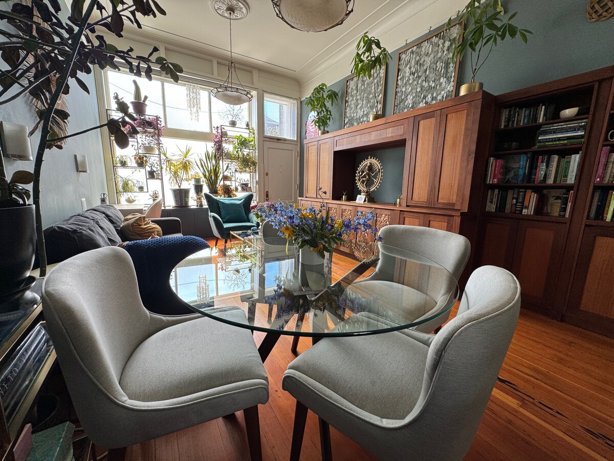 Ava Prantsuse uksed terrassile ja jää päikesepaistelisele hommikusöögile selles haruldases rahulikus ja vaikses keskkonnas keset linna. Eraldi tuba mugava laia kaheinimesevoodi ja vannitoaga eraldi sissepääsuga 1906. aasta viktoriaanliku ühepereelamus. Kogu sinu majutuskoht on peamajast sõltumatu terrassiga ja istumisalaga meie ilusas aias - suurepärane koht, kus nautida tassi kohvi või klaasi veini. * Pane tähele: kööki ei ole. *** SUITSETAMINE ON KEELATUD. Midagi. Mitte isegi esiastmel ja tagaaias. Ei mingit veipimist Kui see on probleem, ei pruugi see sobida. Ööbida tohivad ainult broneeringusse kuuluvad külalised. Pakume: wifi, kohvimasin, veekeetja, mikrolaineahi, minikülmik, nõud ja klaasid (ma pesen nõud). Pesumasina, kuivati, triikraua ja auruti kasutamine - lihtsalt küsi. Külalised on terrassil ja aias teretulnud istuma. Oleme San Franciscos elanud palju aastaid ning oleme valmis pakkuma soovitusi ja juhiseid. Austame sinu privaatsust, kuid oleme sinu jaoks saadaval. Ootame teiega kohtumist! Sviit asub elamurajoonis Panhandle 'i põhjaosas, Golden Gate' i pargi lähedal ja kust pääseb hõlpsasti linna teistesse osadesse. Piirkonnas on palju viktoriaanlikke maju, väikseid korterelamuid ja kohalikke restorane. Transport: 1/2 kvartalit #21 Hayesi bussini - sõidab kesklinna; 1,5 kvartalit #5 Fultonini läheb kesklinna ja randa #33 Stanyan crosstown to Castro & Mission areas, 4 Blocks to #43 Masonic-goes crosstown. BART on hõlpsasti ligipääsetav - vii 21 Hayes Civic Centeri jaama. Enamik meie külalisi reisib ühistranspordiga linnas ringi. *Uber ja Lyft tulevad kiiresti, kui helistad. Soovitatav hilisõhtuks ning lennujaama ja tagasi minekuks. Võid helistada ka taksodele. *Parkimine: tänaval on tasuta parkimine. Öösel ja nädalavahetustel ei ole ajalisi piiranguid. Tööpäevadel on SF-is paljudel kvartalitel 2-tunnine ajapiirang. Võin soovitada. Läheduses on mõned ajapiiranguteta tänavad. Külalised, kellel on olnud auto, on hästi hakkama saanud. Parkimine võib olla keeruline igas linnas. Meil on koer, aga ta ei lähe tuppa ja ta ei suhtle külalistega, kui nad just ei soovi. Ta on 20 naela Cavapoo (King Charles Cavalierʻiel & Poodle) juustega, mitte karvaga, nii et hüpoallergeenne. Suitsetamine ja veipimine on keelatud. Isegi mitte terrassil ega eesmistel treppidel. Ööbida tohivad ainult broneeringusse kuuluvad külalised. Pakume: wifi, kohvimasin, veekeetja, mikrolaineahi, minikülmik, nõud ja klaasid (ma pesen nõud). Triikraud ja triikimislaud Sviit asub elamurajoonis Panhandle 'i põhjaosas, Golden Gate' i pargi lähedal ja kust pääseb hõlpsasti linna teistesse osadesse. Piirkonnas on palju viktoriaanlikke maju, väikseid korterelamuid ja kohalikke restorane. Üks kvartal GG Parki. Ühistransport läheduses; Uber, Lyft ja taksod. Parkimine ei ole piiratud öösel ja nädalavahetustel kogu päeva. Tööpäevadel on 2-tunnine piirang. Selleks, et aidata mul osta mõned päevapiletid, võid mulle hüvitada 8 dollarit päevas.