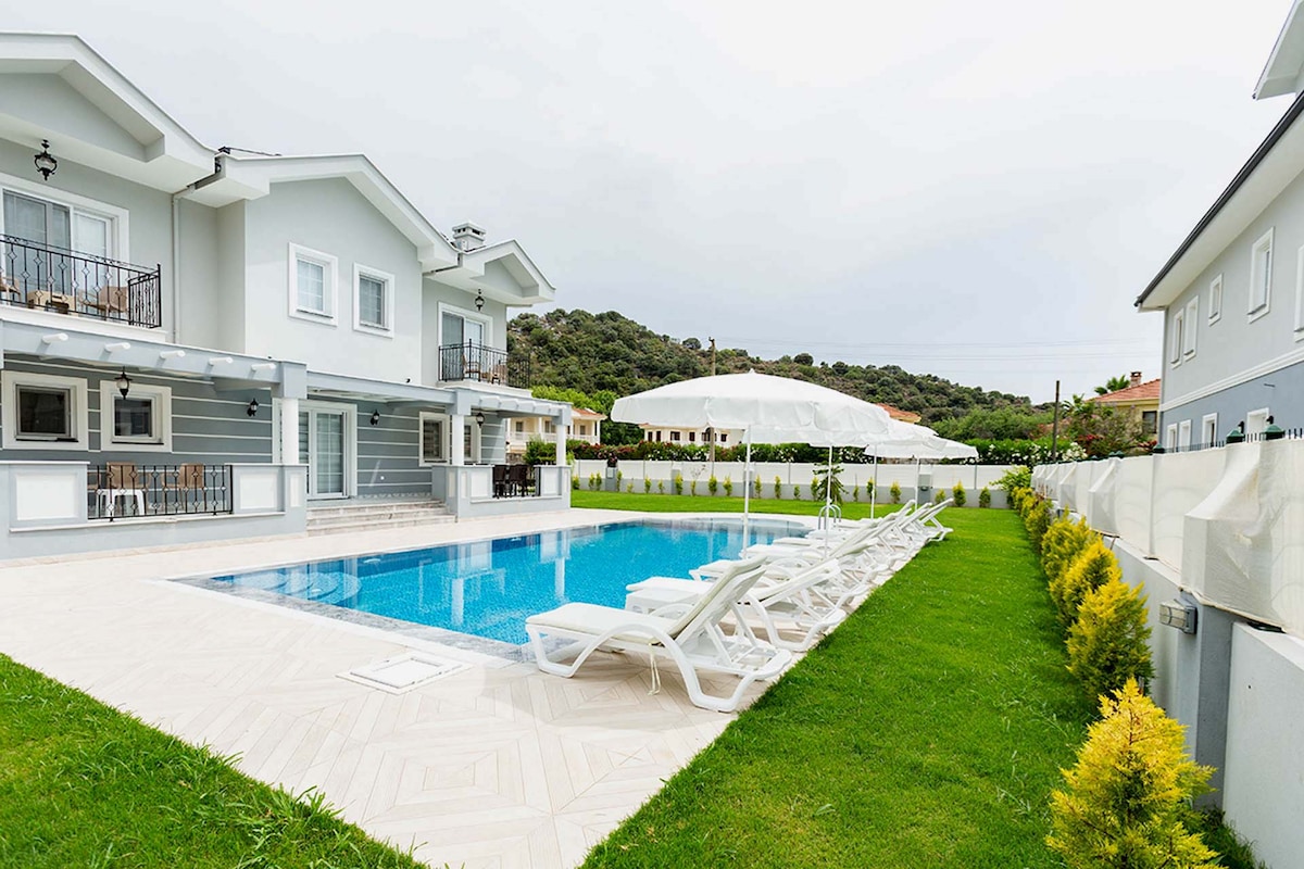 Akyaka türkiissiniste villadena on meil väga hea meel teid, meie lugupeetud külalisi vastu võtta. Meie villad on 2 kvartalit A ja B, kust avanevad vaated merele ja loodusele. Akyaka keskus asub selliste kohtade lähedal nagu Akyaka azmak ja asub kesksel kohal. Meie villades on palju mugavusi, nagu privaatne grillimisala , bassein, köögiriistad , piiramatu WİFİ jne. Turvameetmeid rakendavad akendes olevad alarmid ja turvakaamerad.