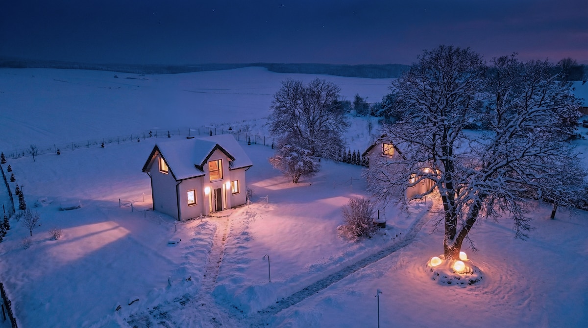 Nuka House on Opawskie mägedes asuv maamaja – 5000 m² aeda, vaated mägedele ja katkematu vaikus. Kogu majutuskoht on ainult sinu päralt. Sinu täielik privaatsus ja turvalisus on tagatud tarastatud kinnistu ja ööpäevaringse välise jälgimisega. Naudi kümblust tähtede all, küünlavalgel ja vihmajärgselt lõhnava õhuga. Vaikne õhtu: 530 PLN Kümblustünni ja küünaldega: 647 PLN Mullivann ilma ööbimiseta (1 tund): 250 PLN