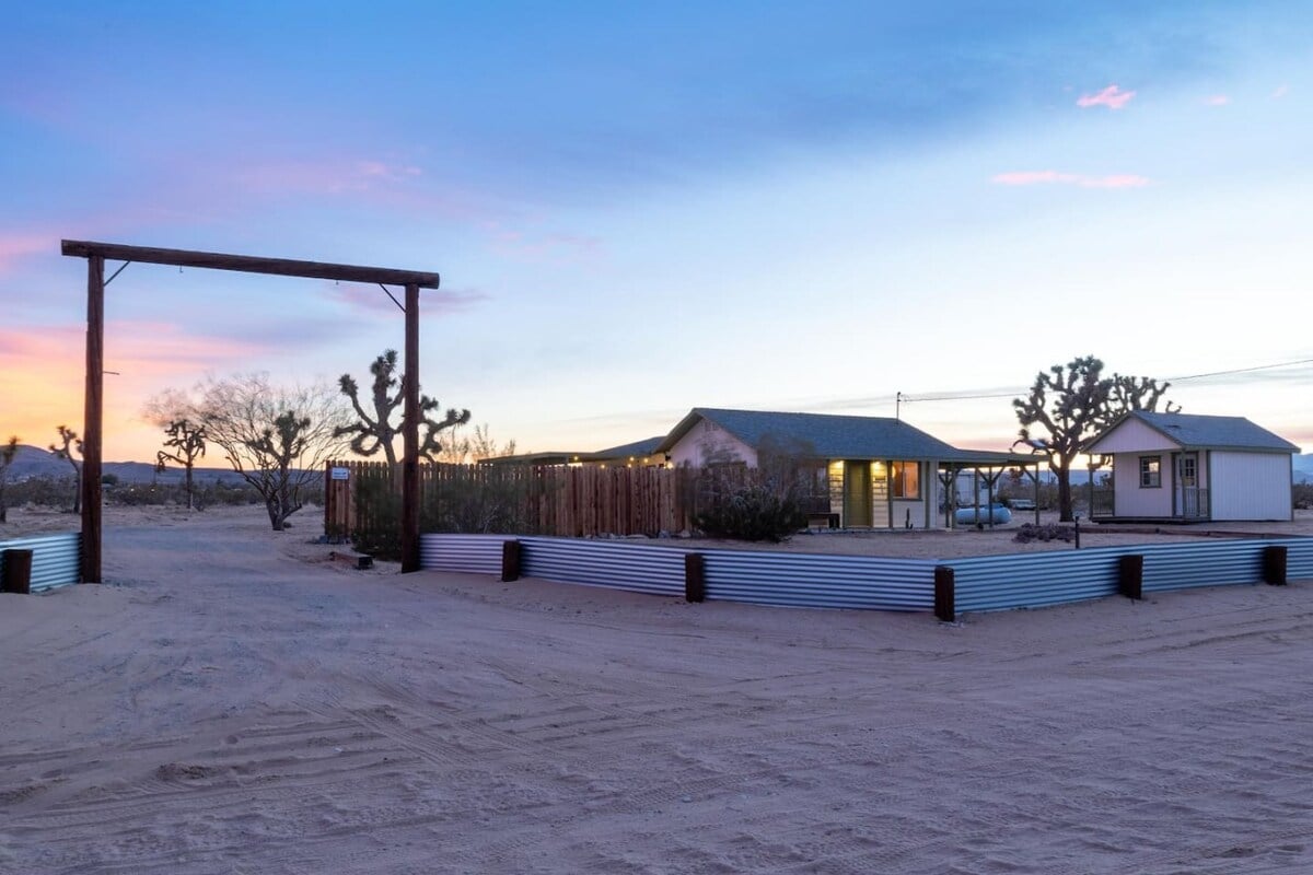 1960. aastal ehitatud StarBreakeri rantšo, mis asub 5 aakri suurusel Mojave kõrbemaal, on täielikult ümber kujundatud, et luua meeldejääv, privaatne ja lõõgastav puhkus. Meie 2 voodi/1 vanni oaas asub Joshua Tree piirkonnas Landersis ja on mõeldud mugavuse tagamiseks nii seest kui ka väljast. Toas on õrnade värvidega rahustav õhkkond läbimõeldult kureeritud sisekujunduse ja väikeste luksustega. Väljas saad süüa al fresco meie söögitoas vaatega, nautida puidust lõkkekoha pragunemist või lõõgastuda meie XL võrkkiiges.