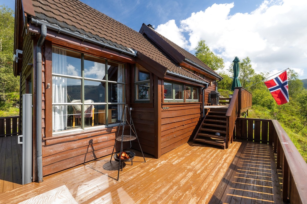Naudi diivanilt või aiast kaunist vaadet mäele ja Vangsvatnetile! Ainult 15-minutilise jalutuskäigu kaugusel kesklinnast, gondlist või rannast. Suur aed terrassiga ja välistünnisaun koos elektriahjuga. Maja asub vaikses kohas, kus on kool ja mänguväljak maja allosas. Voodi suurus: 180 cm ja 120 cm Öökatted ja rätikud hinna sees.