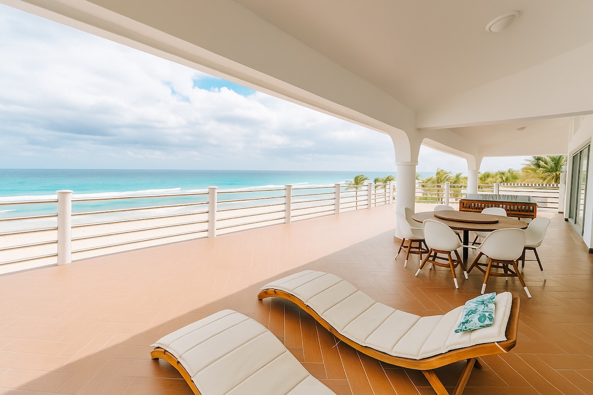 Prime Hotel Zone location on Cancun’s main boulevard, within a private beachfront residential community. This stunning, spacious villa features a large terrace with a private pool, BBQ, outdoor lounge, and dining area, all overlooking the Caribbean and Isla Mujeres. Recently renovated with high-end finishes and thoughtful upgrades. Direct beach access and 24/7 security ensure a safe, comfortable, and unforgettable stay. Steps to top restaurants, shops, and nightlife.