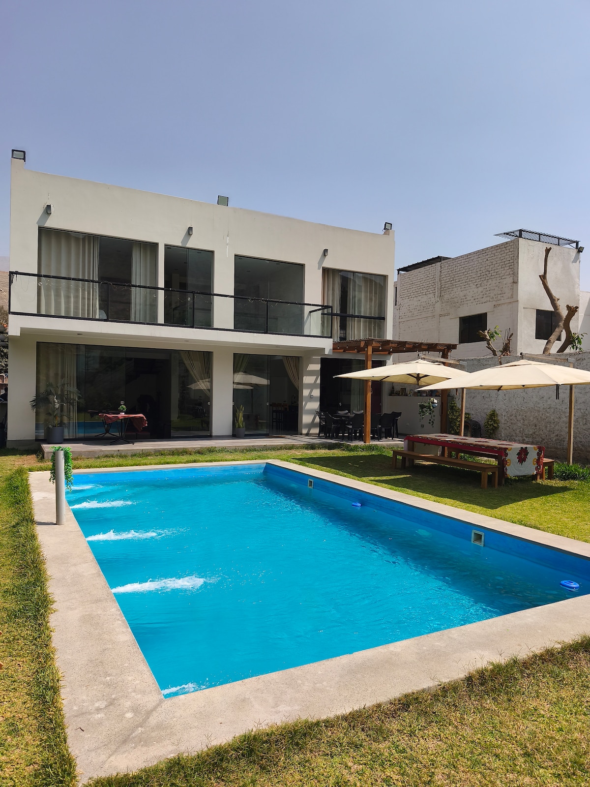 Täielikult renoveeritud 3 magamistoaga maja. Suur terrass ja bassein panoraamvaatega. Eksklusiivne koht 30 km kaugusel Limast, Valle de Los Cóndores Chaclacayo. Seal saad nautida piirkonna rahu, päevitada basseinis, mis on mõeldud AINULT SINU KASUTAMISEKS, ja grillida eksklusiivses keskkonnas. Broneerimine ja maksmine on võimalik AINULT AIRBNB rakenduses. Kuni 8 külalist, päevakülalised EI OLE lubatud. Tule koos sõprade või perega!!
