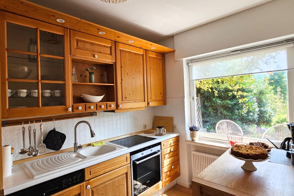 Selles korteris saad end oma sissepääsuga korteris täiesti mugavalt tunda. Kõik põrandad on valmistatud naturaalsest puidust, mudatellistest seinad, ruumi atmosfäär on väga meeldiv. Edelarõdult avaneb suurepärane vaade metsikult hooldatud kinnistule, metsale ja naabri suvilale. Väliala ja saun (hinnaga) on kasutamiseks saadaval. Korter asub Bad Münstereifeli ajaloolisest kesklinnast vaid 4 km kaugusel. Lõõgastus - sport - loodus - Ostlemine