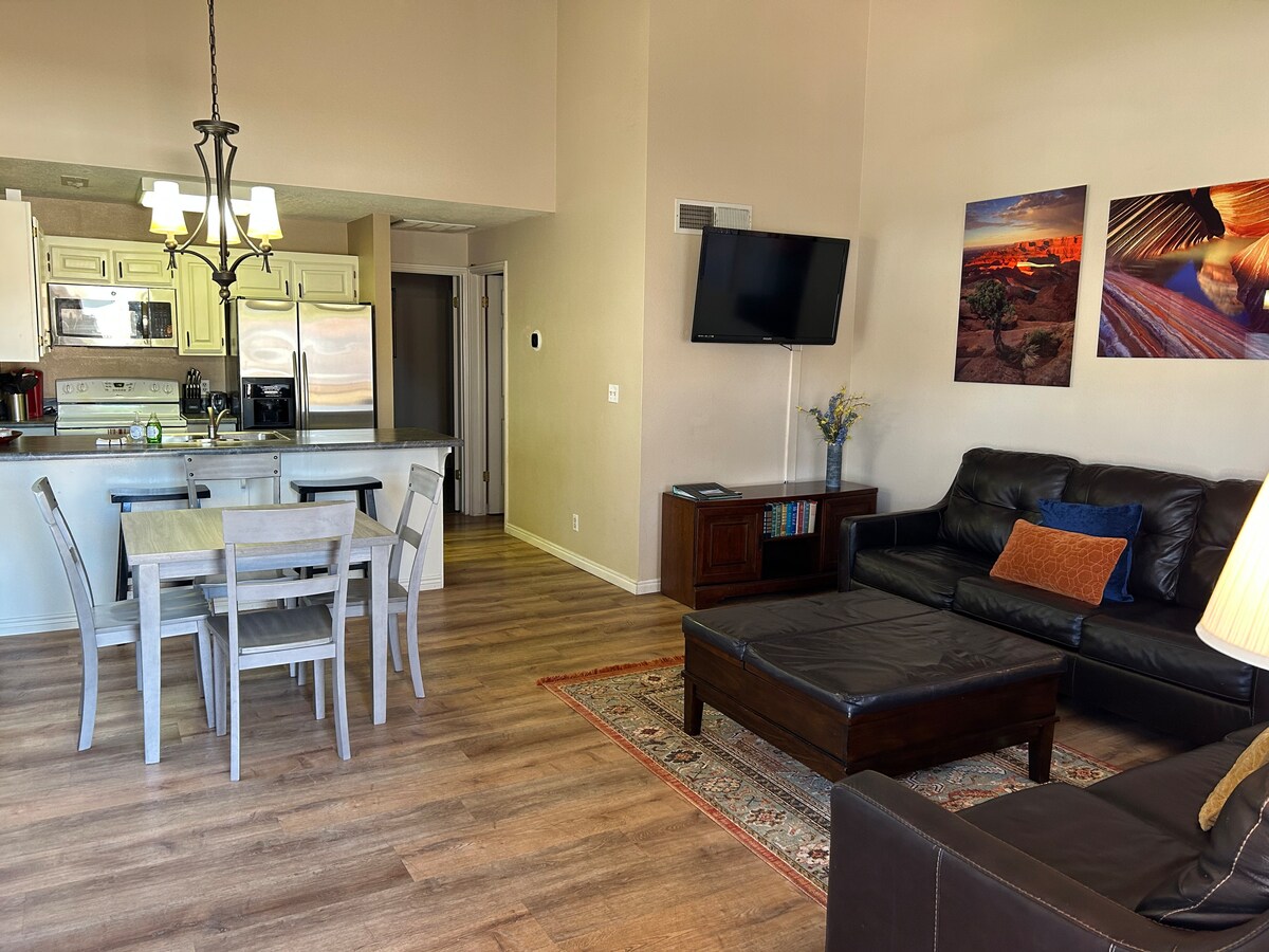 Muuda see nelja magamistoa ja 2,5 vanniga ridaelamu oma koduks! See majutuskoht asub kesksel kohal ja kõigi Lõuna-Utah 'hämmastavate vabaõhutegevuste lähedal. See majutuskoht on saadaval öö- või nädalapõhise üürina (vähemalt 2 ööd) ja mahutab 11 inimest. Võta kaasa oma pere ja sõbrad ning kogune elutuppa, kust leiad 55-tollise 4K Roku teleri, mänge ja palju muud! Leiad ka täielikult möbleeritud köögi, mis avaneb grilliga terrassile. Läheduses asuv klubimaja ja kaks soojendusega basseini ootavad sind.