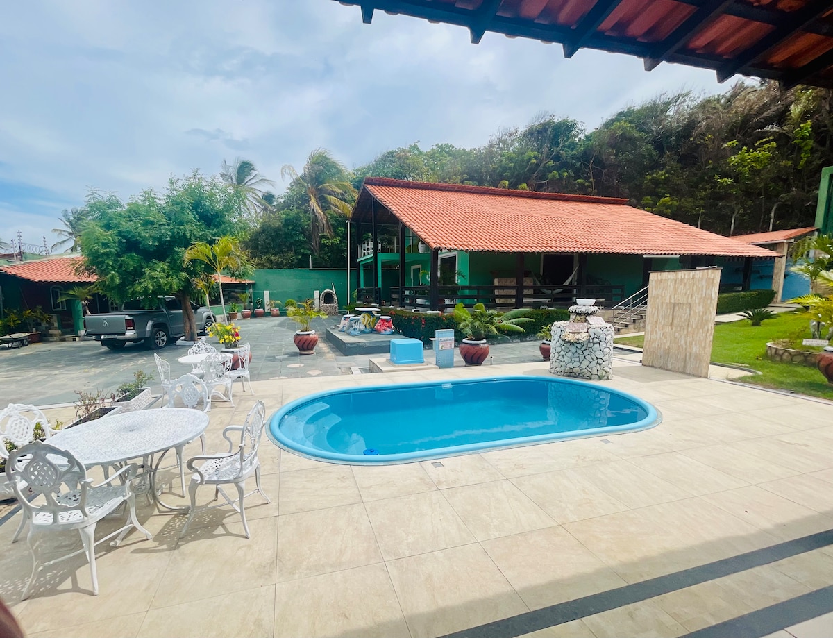 - Local ideal para se desconectar e quebrar a rotina habitual da cidade. Aqui a programação é caminhar na praia, entrar no mar, relaxar na areia, praticar algum esporte, fazer churrasco, banhar de piscina. - Praia ÚNICA, com ótima Balneabilidade. * Quartos com ar condicionado. * Até 10 pessoas (4 camas de casal + 2 redes) * Não tem TV. * Não ofereço roupas de banho!!! * INTERNET Wi-fi muito boa ;-) * Extras: Air Fray, Geladeira, fogão com gás, churrasqueira móvel, sanduicheira e Liquidificador