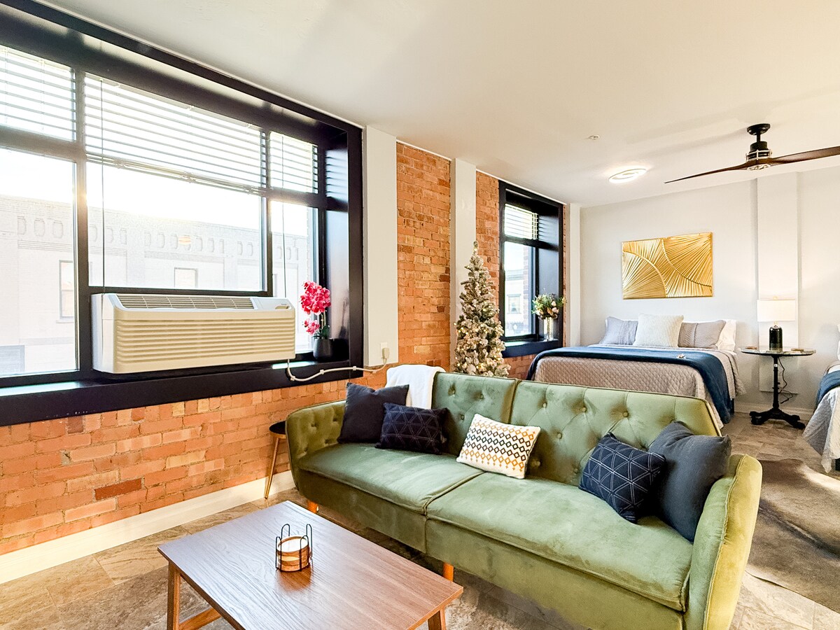 Imelised mugavused kesklinna südames! Parimate restoranide, kohalike poodide ja jõe lähedal. Lihtne juurdepääs kiirteele ja tasuta parkimine. Sviidis on täielikult varustatud köök uhiuute seadmetega. Luksuslik dušinurk ja sajandivahetuse kraanikauss kaunistavad travertiinist plaaditud vannituba. Naudi kiiret kiudoptilist internetti, et töötada kodust, või voogesita filme mugavast voodist 65-tollises teleris iga eelinstallitud rakendusega. Tasuta kohv ja jukebox fuajees ja pinball pesuruumis.