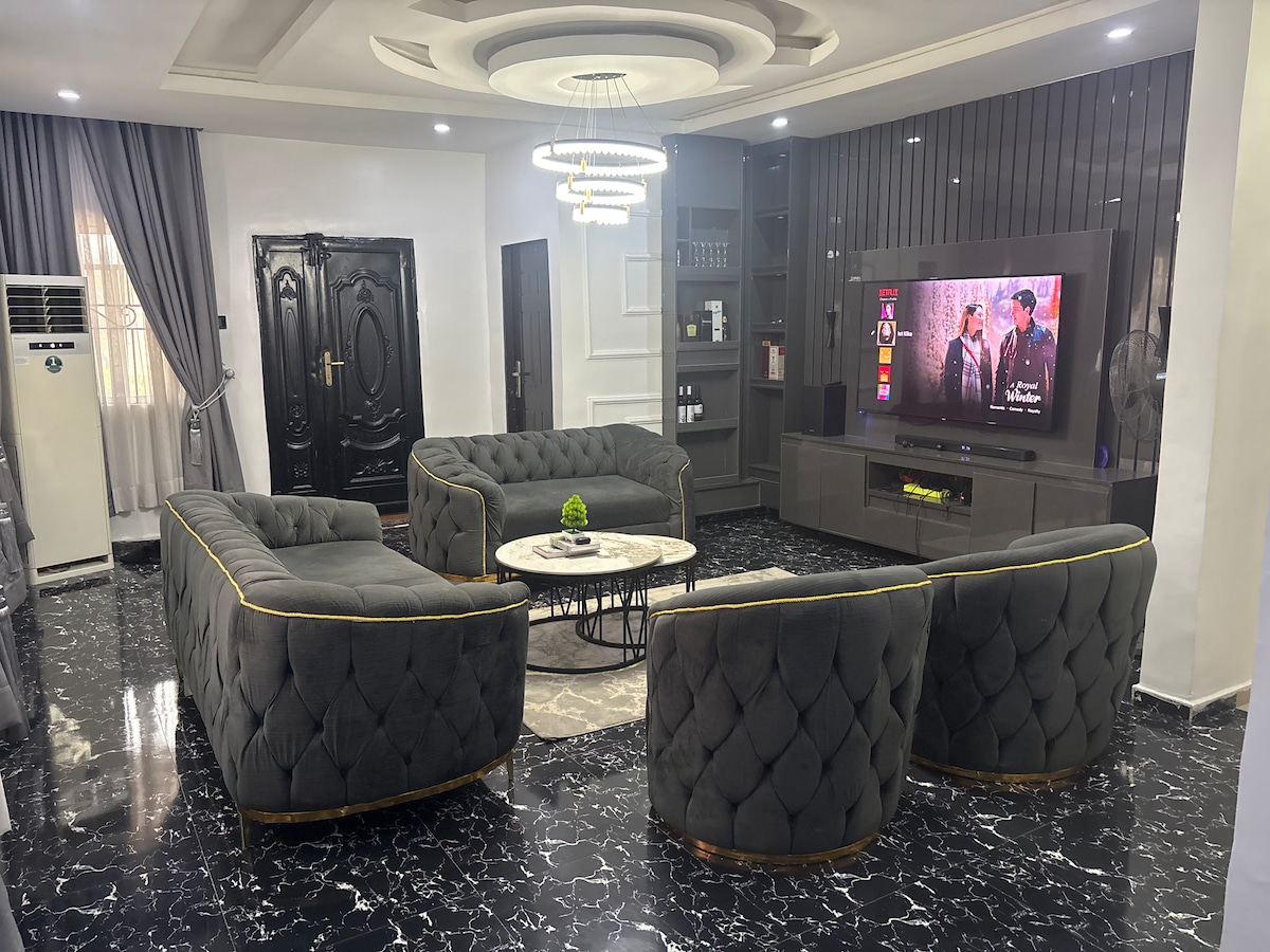 Two minutes drive to Asaba international Airport. 5 minutes drive to central area including Asaba mall, banks, Town square, Government house, State and Federal Secretariat. We have all basic amenities including high speed starlink internet for your comfort. Netflix account is added, YouTube and many more. Security is top notch as we have installed CCTV on all corners and also a security on site. Quite environmentally friendly area.