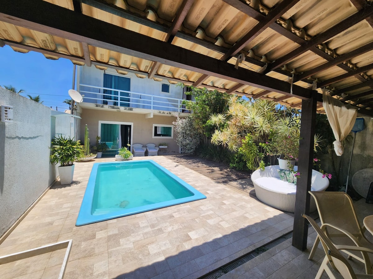 Espaço completo com cozinha e acessórios, com piscina e área gourmet. localizada em rua tranquila e silenciosa, estamos localizados a 300 metros da lagoa de Iguaba Grande. Com Vasto comércio de supermercados e diversas lojas na região, Ambiente familiar e aconchegante, área gourmet e piscina e compartilhada com anfitriã.