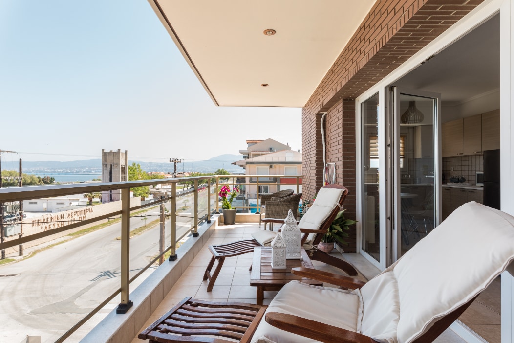 Korter suurepärases kohas vaatega merele ja Thessaloniki. Kõik mugavused Varustatud mööbli ja elektriseadmetega. Kliimaseade küte ja kamin Kaugus rannast kolm minutit . Thessaloniki lennujaamast 9,6 km ja Thessaloniki ajaloolisest keskusest 23 km Lihtne ligipääs Halkidiki prefektuurile Vaid 50 km kaugusel suurepärastest randadest lõputu sinise ja ereda päikesega . Kõrgetasemeline külalislahkus meeldivaks ja meeldejäävaks peatumiseks .