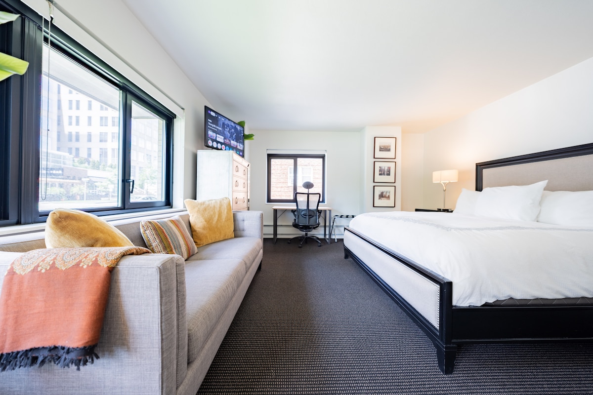 Experience unparalleled luxury and comfort in this stunning, hotel-style suite nestled in the vibrant heart of the Country Club Plaza. Relish in the cozy king-size bed with luxury linens, high-speed internet, a flat-screen TV, and a convenient kitchenette. Benefit from on-site gym, laundry facilities, and a dedicated parking spot. I am available 24/7 for any assistance you may need. For more accommodation options, search 'Kinner Properties'. Book now to secure a memorable Kansas City experience!