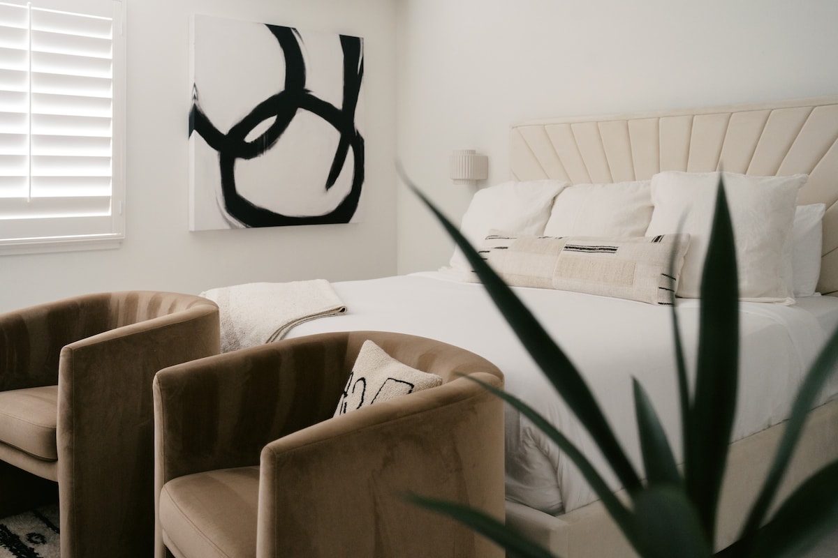 Luksuslik loft väikese privaatse basseini/mullivanniga. 2BR (kaheinimesevoodid), 2BA, 2 autoga garaaž. 1900 ruutjalga Ace hotelli kõrval ja 100 jala kaugusel Koffist. Loftis on ka kaks üheinimesevoodit. Selles täiustatud ridaelamus S. Palm Springsi Twin Palmsis on privaatne sisehoov ja bassein/ mullivann, bassein cabana ja istekohad, varustatud garaažisaal, kamin, Weberi gaasigrill, tohutud vaated mägedele, dramaatilised lofti laed, kohandatud valguskasti LED-valgustus ja kodune pesumaja.