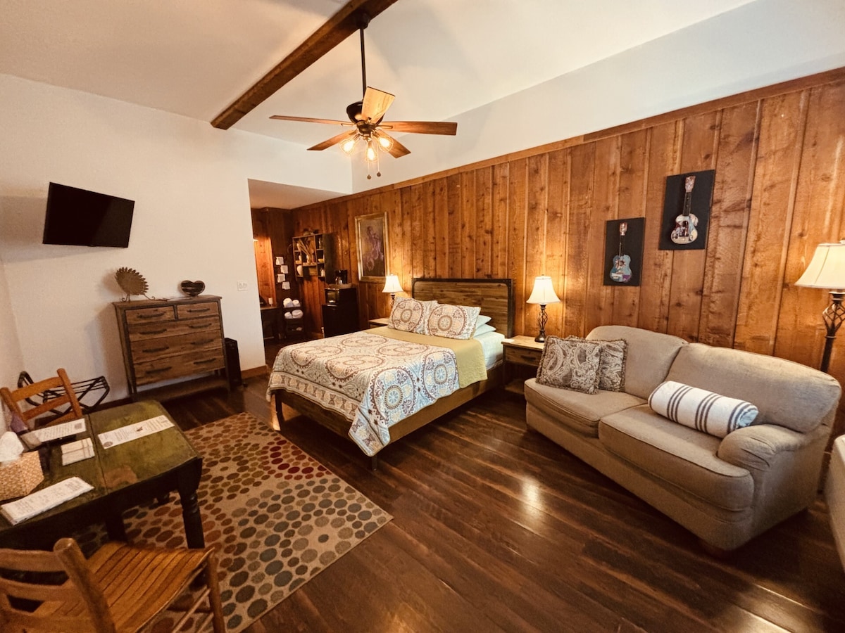 Naudi korralikult magada selles stiilses ja kvaliteetses toas. Toas on eriti lai kaheinimesevoodi ja suur vannituba koos sisseehitatud dušiga, mis on piisavalt suur kahele inimesele. Vali traditsioonilise dušipea ja käeshoitava seadme vahel. Soovi korral on saadaval dušitool. Lihtne juurdepääs, treppideta. Tasuta wifi. Nutikas teler Hulu ja lisaks saad sisse logida oma voogedastusteenustesse. Sinu mugavuse huvides on toas minikülmik, mikrolaineahi ja kohvimasin.