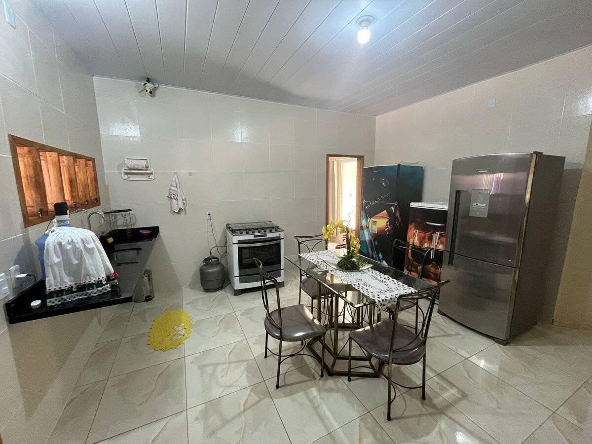Relaxe com toda a família nesta acomodação tranquila. Nela vc pode ficar bem independente, cozinhar, lavar, fazer seu churrasquinho e colocar sua bebida pra gelar!!! E desfrutar de toda estrutura da Pousadinha da Lulu, que também funciona como restaurante!!!