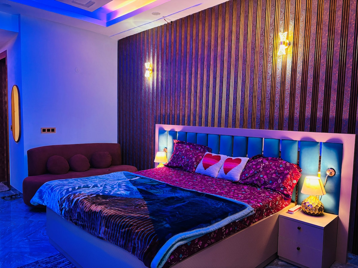 Stay in a stylish studio in the heart of Central Noida, just minutes from Spectrum Mall and Sector 50 Metro. Thoughtfully designed with a cozy queen bed, smart TV, and essential amenities, it’s the perfect retreat for couples or small families. Enjoy self check-in, reliable Wi-Fi, and a compact kitchen for home-style meals. Whether you’re here for work or leisure, this warm and modern space offers comfort, convenience, and quick access to shopping, dining, and city life.