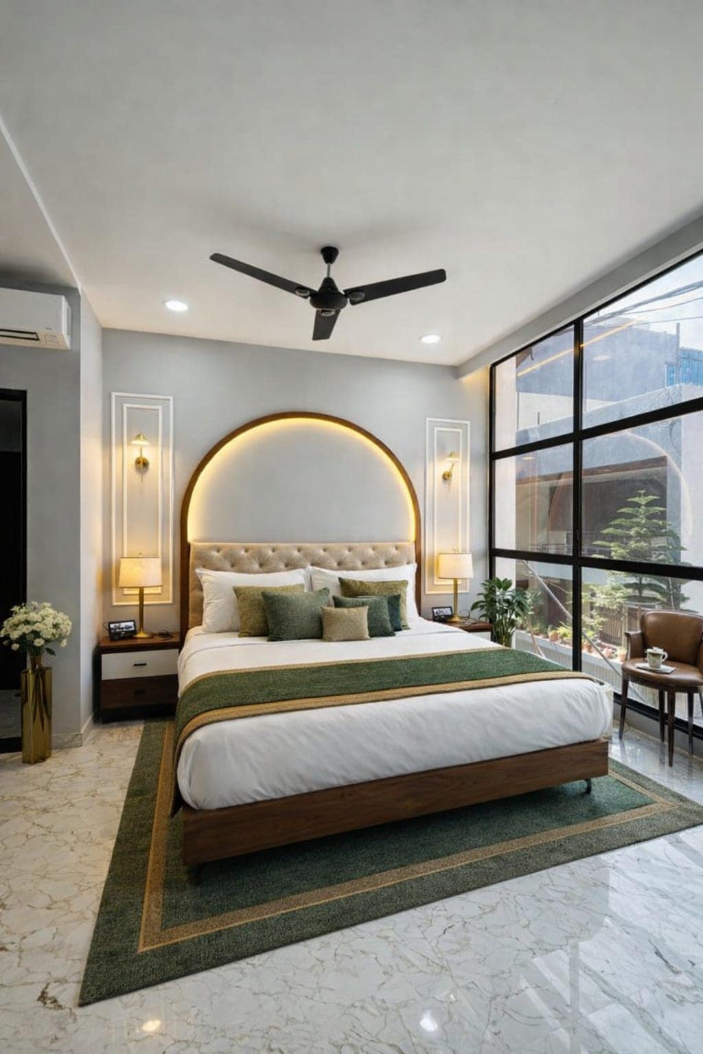 Astu kaunilt sisustatud tuppa, kus kohtuvad kaasaegne elegants ja soe mugavus. Majutuskohas on pehme king-suuruses voodi, pehme valgustus ja esmaklassilised voodilinad, mis tagavad rahuliku une. Suured aknad toovad sisse loomulikku valgust, luues kogu päeva jooksul rahuliku ja värskendava õhkkonna.
