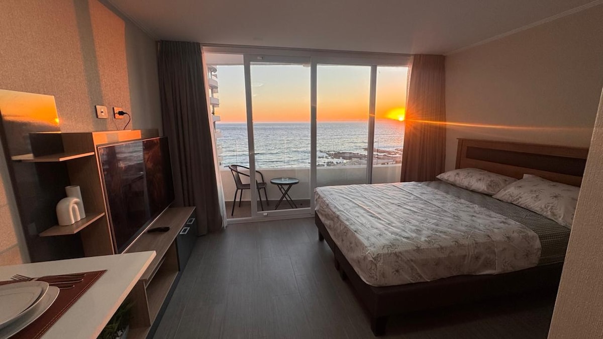 Departamento amplio full equipado, excelente ubicación y una hermosa vista en todo el departamento, donde te Podrás relajar y sentir las olas del mar, disfrutarás de un bello atardecer con Mejor vista y ubicación en la ciudad, el Edificio cuenta con vigilancia las 24 horas , conserjería, piscina, quincho, gimnasio, estacionamiento bajo techo, cercano a los lugares más turísticos de la ciudad, casino, playa cavancha, paseo borde costero, mall, supermercados, pub, restaurantes, etc