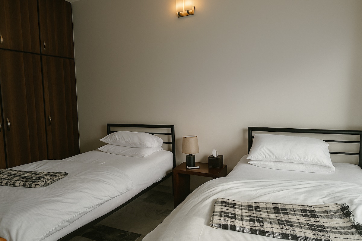 Comfortable private 1BHK in a clean, fully furnished basement portion in Bahria Phase 7. High-speed Wi-Fi, shared kitchen, laundry, and peaceful surroundings. Ideal for couples, families, travelers, students, or short work trips.