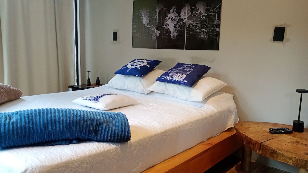 Stiili ja mugavusega maja, 5-tärni sviit (gaasidušš ja suur vann kahele hüdroenergiaga, kliimaseade, laeventilaator, kvaliteetne queen-tekiht, 400 traadiga puuvillased linad,TV, kiire WiFi - kaks teenusepakkujat, rõdu võrguga, vaade atlantica metsale ja avar kapp. Täiendava mugavuse tagamiseks - kamin, täisköök ja kiosk-churrasqueira, bassein kahele saunale ja jõgi - kõik privaatsed. Taraga aed sinu lemmiklooma jaoks. Vaikne korter, lihtne juurdepääs randadele.