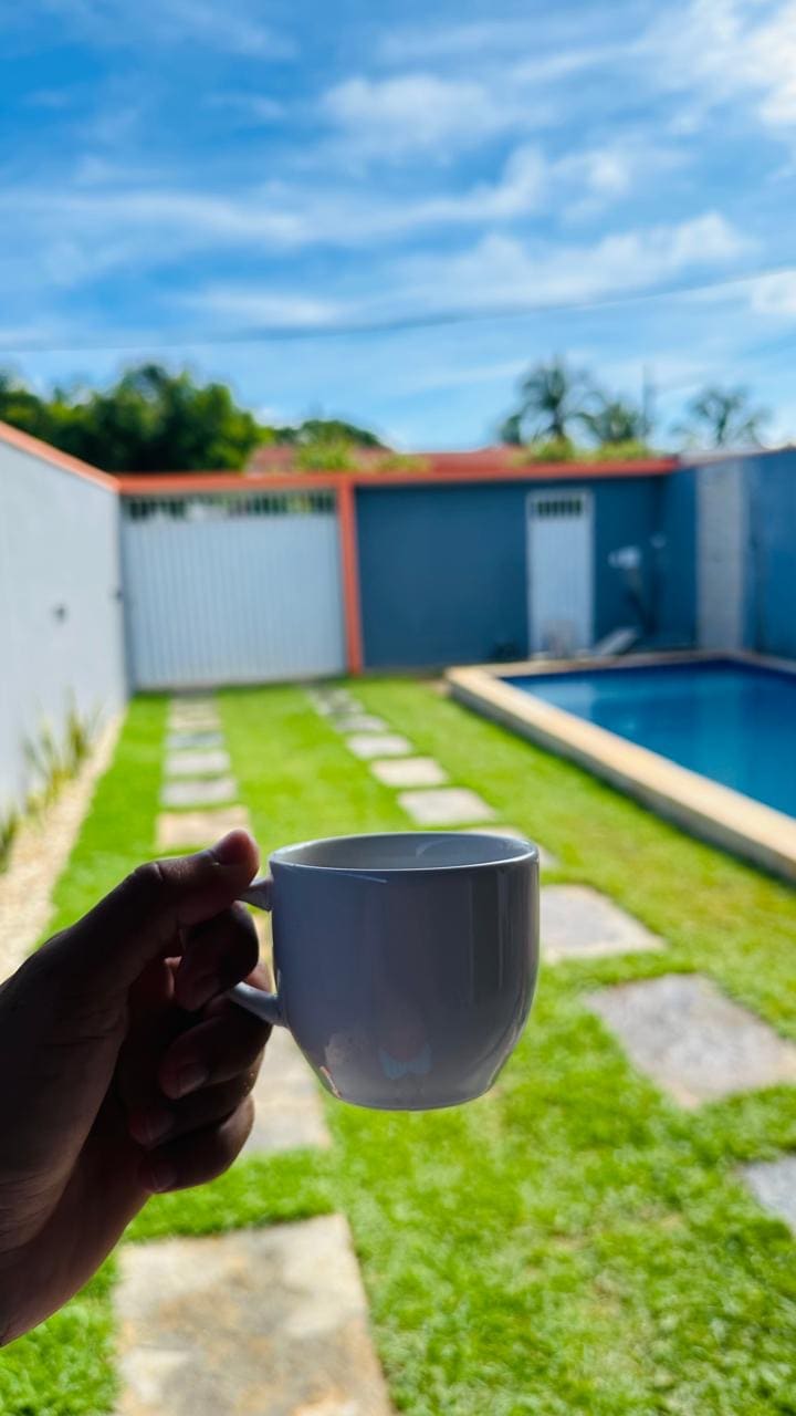 Maja Ilha do Guajirú, mis asub 100 meetri kaugusel rannast. Seal on piisavalt ruumi garaažile. Ideaalne reis klassis või perega. Me aitame sind igal võimalikul moel. 2 sviiti • 1 sviit (1 kaheinimesevoodi, külmik, televiisor, kliimaseade konditsioneer, võrkkiik ) • sviit (2 kaheinimesevoodit, 2 võrkkiike, ventilaator) 1 välivannituba - Rõdu Grill sügavkülmik Bassein Köök Garaaž