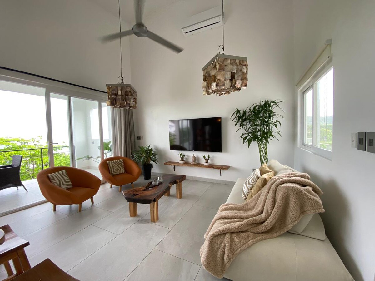 Playa Hermosa Surf. Hämmastavad päikeseloojangud! Naudi oma peatumist selles luksuslikus ookeanivaatega butiik-katusekorteris, kus on 1 ookeanivaatega magamistuba 1 eriti laia kaheinimesevoodiga, garderoob ja vannituba. 1 magamistuba, kus on lai kaheinimesevoodi ja vannituba, suur kõrgete lagedega elu-/söögituba (1 lisadiivanvoodi), täielikult varustatud köök, suur rõdu, kust avaneb avar vaade Vaiksele ookeanile, aiale ja mägedele. Ideaalne sõprade või perega reisijatele kuni 5 inimest ja paaridele, et tulla ja nautida seda paradiisi.