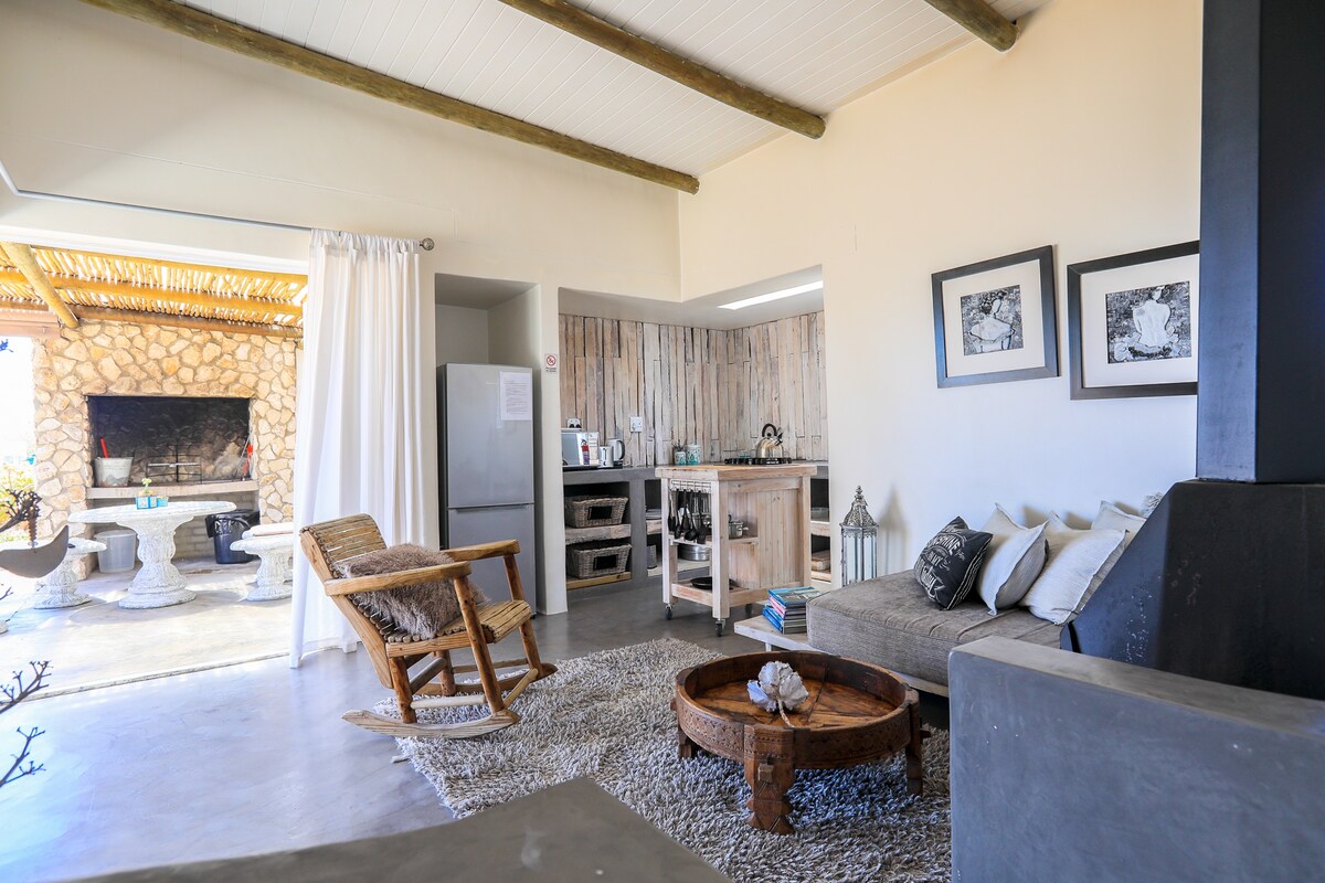 Maamaja Bekbaai luidetel, Paternoster. Merevaade rõdult. Suur avatud köök/kaminaga puhketuba. Avar magamistuba kaheinimesevoodi ja rohkelt kappi. Sviit vannituba duši ja vanniga. Rõdu braai 'ga. Hea wifi. Täielik DSTV. Lemmikloomasõbralik eelneval kokkuleppel - väike ja keskmise suurusega koer. 5-15-minutilise jalutuskäigu kaugusel restoranidest, poodidest ja kunstigaleriidest. 1 alla 3-aastane laps on teretulnud. Pls teatab sellest broneerimisel - kehtib tasu 50 R öö kohta.