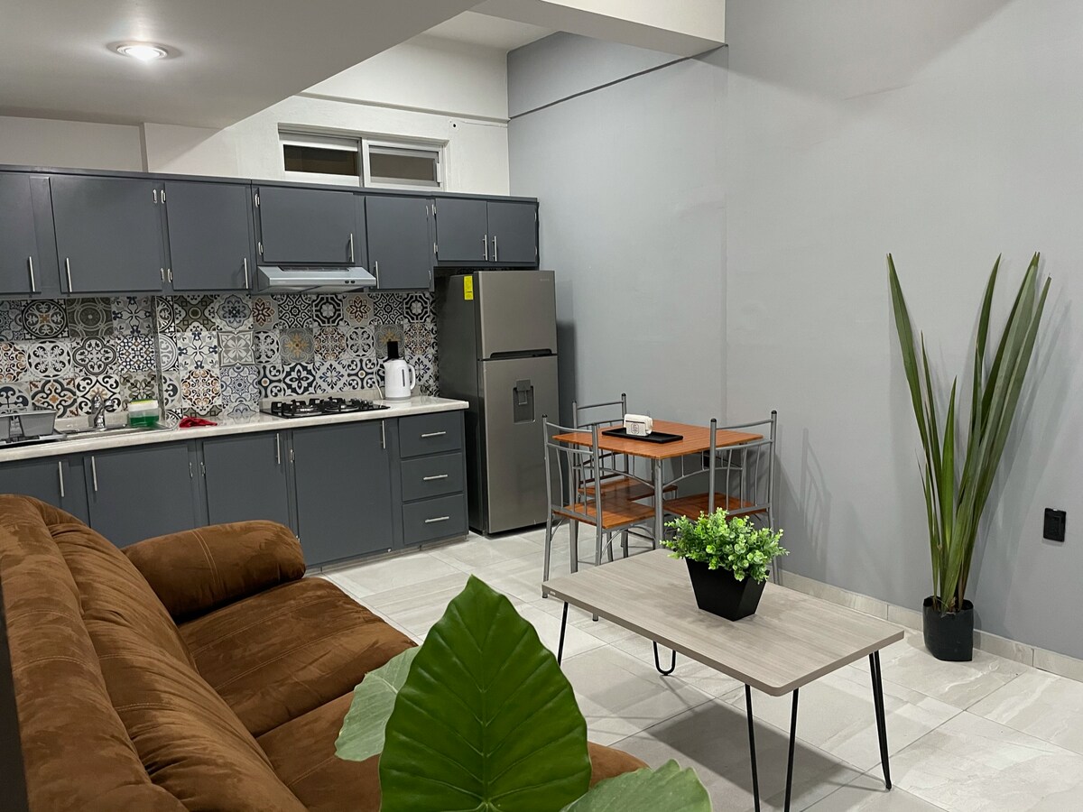 Departamento tipo loft de 1 recamara (una cama matrimonial y una cama individual) en segundo piso, cuenta con excelente ubicación a tres cuadras del Santuario Guadalupano, a una cuadra del hospital San José en zona muy céntrica de la ciudad, cuenta con centro de lavadora y secadora.