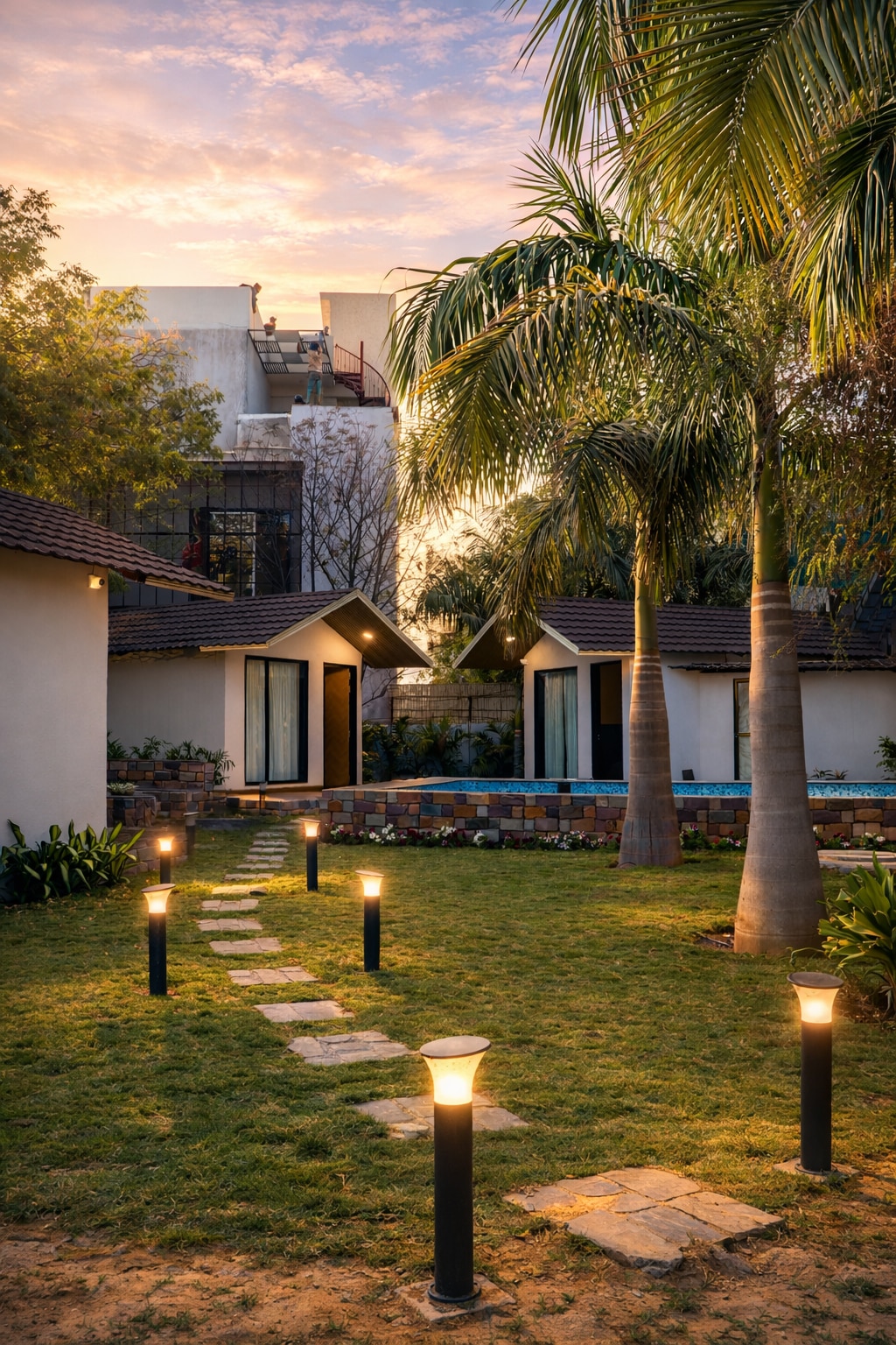 Astu nelja voodiga villasse, mis kiirgab boheemlaslikku võlu ja rahulikku luksust. Hoovilaadne paigutus ümbritseb pimestavat basseini. Kolmes eklektilises toas on eriti lai kaheinimesevoodi; ühes on kaks vannituba. Vaid 10 minuti kaugusel Vaishali Nagari elavatest kohvikutest ja stiilsetest baaridest asuvas villas on 75-tolline nutiteler, Bose 'i kõlarid, sise-/välibaarid, 1200 ruutjalga elutuba ja kureeritud köök. Naudi ööpäevaringset majapidamist, valikulisi kokateenuseid ja sujuvaid zomato&blinkiti kohaletoimetamisi.