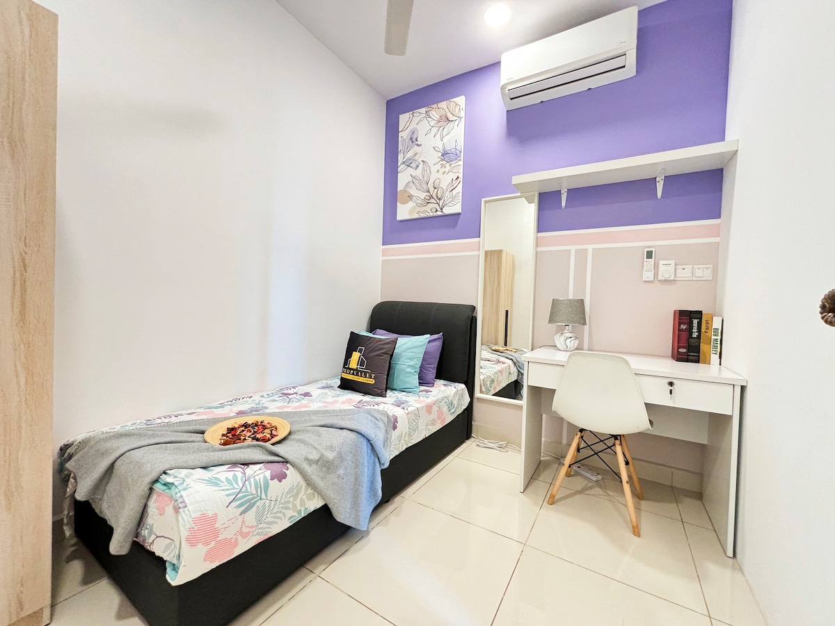 Avasta meie Airbnb puhkepaigas täiuslik segu kaasaegsest mugavusest ja ajatu sarmist. Naudi sujuvat juurdepääsu mugavustele, sealhulgas basseiniäärsele grillimiskohale ja avarale terrassile, kus saab öösiti unustamatuid peresidemeid. Püsi ühendatud wifi ja Netflixiga ning naudi kerget toiduvalmistamist. > 3-minutilise autosõidu kaugusel MITECi messikeskusest > 5 minutit Publika kaubanduskeskuse juurde > 10 min sõit KLCC-sse [Pakutakse 1 parkla. Lisaauto, palun taotle meilt. Sõltub saadavusest ]