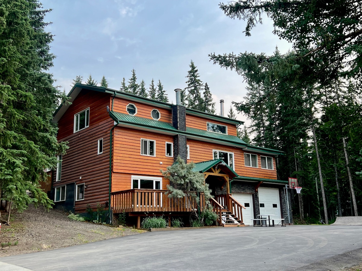 Chasing Cadomin is a stunning open concept log chalet perched on the side of Leyland Mountain. Where family friendly adventures begin as well as a romantic getaway. Enjoy your morning coffee, while gazing at the eastern slopes for the sunrise to come up over the magnificent Rocky Mountains. While listening & watching for birds & wildlife as the McLeod River rushes by. Spend the evening observing the bright stars/moon. Experience hiking/ATV trials, wildlife, fishing, pool table, air hockey, darts
